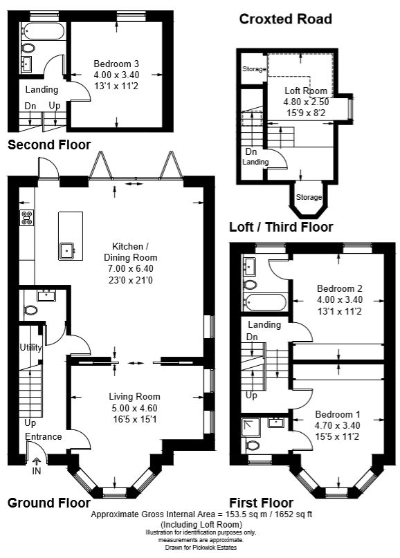 Access to bedroom four is accessible from the third floor staircase that leads up to the top of the house. There is a landing which would make a great study or snug area and there is a large storage cupboard which has been created out of the spire of the roof.