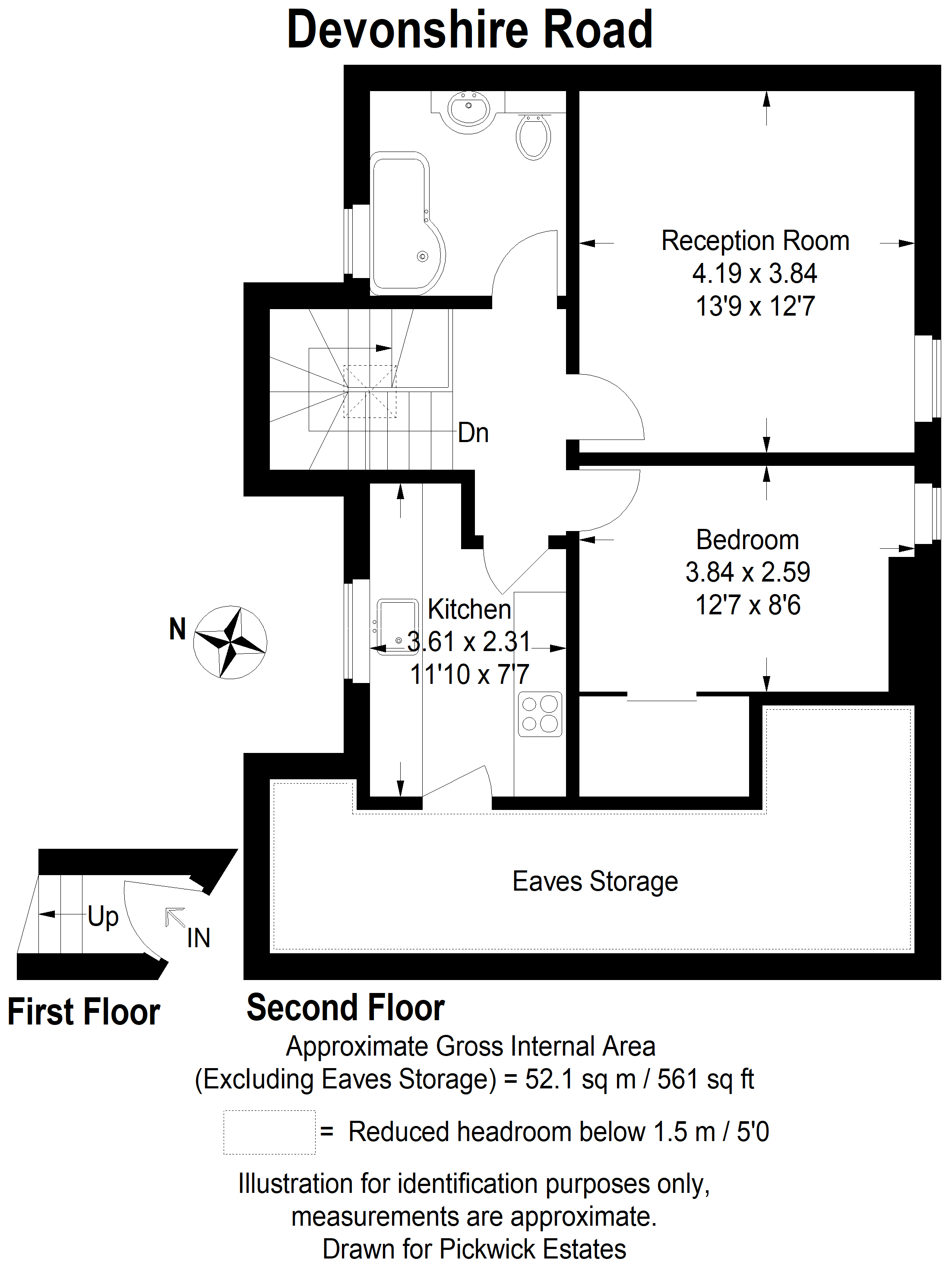 The double bedroom is located at the rear of the house making it nice and peaceful. There is a recently fitted double glazed wooden framed sash window for natural light, carpeted flooring and an ingenious walk in wardrobe that has made cleaver use of the eaves.