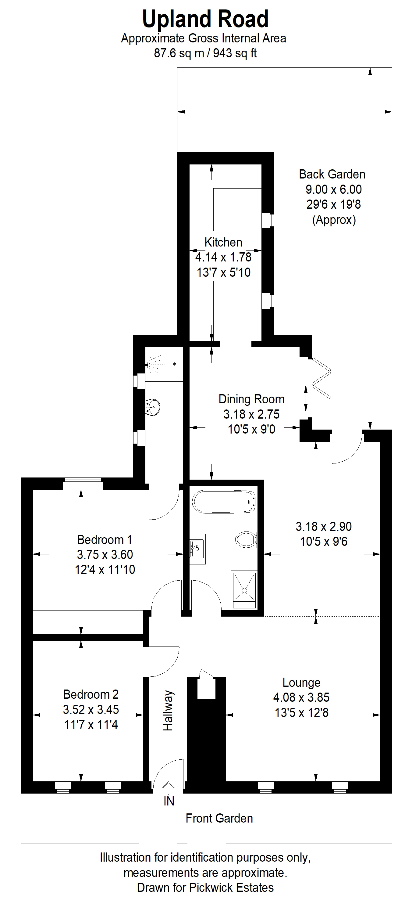 Offered to the market in spectacular style is this outstanding two double bedroom garden flat offering approximately 1000 sqft. The flat has been finished to a very high specification throughout, in contemporary design and benefits from being sold with a SHARE OF FREEHOLD, sole use of a front and rear garden with lighting and irrigation system, double glazing throughout with plantation shutters, fully integrated kitchen and a cellar for additional storage. The contemporary elegance of this flat starts right from the street, the front façade offers great kerb appeal, painted in a stylish dark grey and set back from the street by a private walled, gated front garden which is clad in grey sandstone to compliment the exterior. Through the front door is a central hallway that divides the property in a practical manner, with bedrooms to the left, kitchen/living areas to the right and the family bathroom in the middle. There is also access to the cellar through a trap door in the second bedroom and storage under the stairs. The hallway has bleached wooden flooring that runs seamlessly through the whole property and there are lighted alcoves on either side. Both bedrooms are good size doubles and almost equal in size, the second bedroom is at the front of the property with two large double-glazed sash style windows, furnished with plantation shutters with fashionable white radiators beneath. Adjacent and facing the rear of the property is the master bedroom which compliments the second bedroom with a similar and also has a large sash style window with plantation shutters. Fitted wardrobes span along the whole wall that is shared with the second bedroom, offering an abundance of storage as well as some additional sound proofing. On the opposite side of the room are double doors that lead to a luxurious en-suite shower room that is clad in light grey tiles on the walls and a large walk in shower with a dark grey stone style wall at back, there is also a hanging wash hand basin and a fitted mirror. The family bathroom shares a similar chic style to the en-suite with the same light grey tiles on the walls and floors, a large fitted mirror sits above the bathtub which is accompanied by a contemporary wash hand basin, a toilet and a glass shower enclosure. The right-hand side of the flat offers a sophisticated open planned living/entertaining area with the kitchen/dining area at the back that leads to the garden. The double reception room has two large sash style windows, fitted with shutters that illuminate the room with natural light and at the back of the room there is a double patio door that leads out to the garden. Bleached wood flooring runs all the way through the dining area and into the kitchen. The dining room is dominated by floor to ceiling bi-fold doors that lead to the side return and garden, this draws in natural light and will be great for entertaining in the warmer months. The side return has classy tiled floors with a backdrop of Bamboo against horizontal fencing. In contrast, the opposite wall of the dining room is clad in stylish white Metro tiles. The dining room leads naturally to the kitchen which is fully fitted with integrated appliances set within a good amount of white wall and base mounted units with a stone worktop above housing the hob and sink. Windows to the side allow for natural light and ventilation. The rear garden has a decked area nearest to the property which is ideal for al fresco dining, beyond this is a Astro turf lawn surrounded by more horizontal fencing and bamboo, giving the garden a sophisticated Japanese feel. The garden also benefits from lighting and an irrigation system as well as plenty of space for outdoor furniture and a BBQ. At the end of the garden is a gate that leads to Upland Mews offering handy access from the rear. The property is conveniently located on the North Cross Road end of Upland Road close to the amenities of Lordship Lane and the popular market on North Cross Road held every Saturday. East Dulwich station and Peckham Rye are both easily accessible as well as plenty of bus options that run late into the night. In addition to this the green open spaces of Peckham Rye and Dulwich Park are also close by.