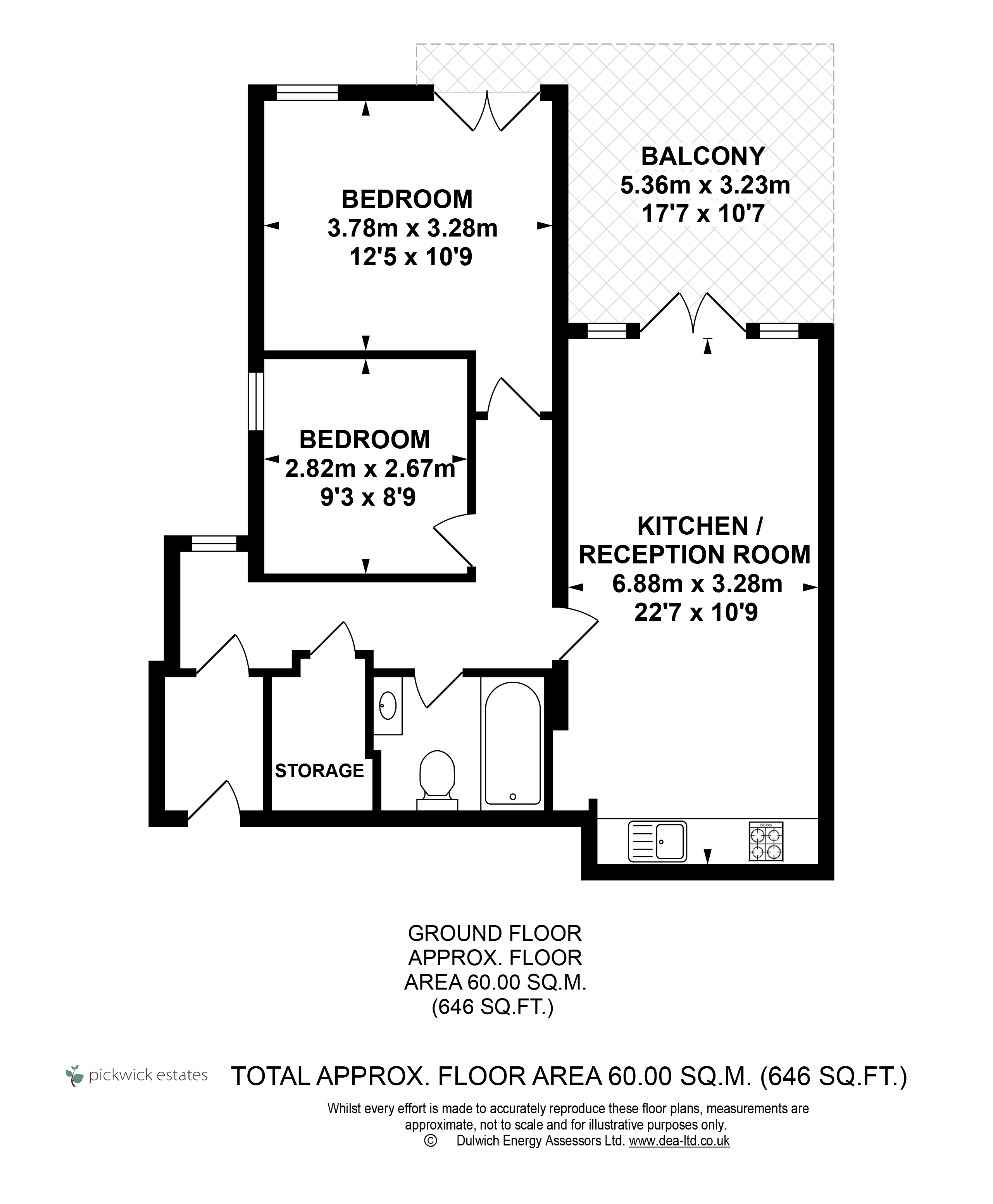GUIDE PRICE £425k - £450k! Beautifully presented two double bedroom ground floor flat with a LARGE WEST FACING PRIVATE ROOF TERRACE offering spectacular views of the London Skyline! The property is located on Canonbie Road which is one of Forest Hill’s premier residential streets, offering a selection of excellent schools, good transportation links such as Honor Oak Park station (Overground and NR to London Bridge) and green open spaces such as Brenchley Gardens, Peckham Rye and Horniman Gardens with its famous museum.The flat is situated within a well-maintained building and offers well-proportioned accommodation with 646 sqft (60 sqm) of floor space, benefiting from double glazing throughout, newly fitted carpets,Entrance to the flat can be found on the ground floor, upon entry there is a handy porch, perfect for hanging coats and leaving shoes. This leads to a hallway, which provides access to all the rooms and has access to a huge storage cupboard and a window to the side of the building allows for natural light. The bathroom has been recently refurbished with stylish fittings, there is a contemporary wash hand basin that sits on a table in front of a mirrored wall, there is a toilet with a vanity unit above, a heated towel rail and a bathtub shower screen and shower attachment. To the rear of the property are the two bedrooms. The smaller double bedroom is set to the side of the building with newly carpeted flooring and a large floor to ceiling window to the side of the building for natural light and ventilation.The main bedroom is at the far end of the building, it’s a good size double with new carpets and two large windows offering far reaching views of London. The larger window opens like patio doors to create a Juliette style balcony that leads to the roof terrace. There is plenty of space for a large double bed and wardrobes.The reception room is open plan to the kitchen, the floors are made of engineered wood and it has really good ceiling height. The kitchen is set on the right-hand wall which defines the kitchen dining area from the lounge. The kitchen has plenty of wall and base mounted white gloss units with a wooden worktop housing the sink, oven and hob with extractor above. There is also space for a dining table and chairs, a tall fridge freezer and the washing machine and dishwasher are both integrated. The lounge area is to the left as you enter the room, this area is dominated by the massive floor to ceiling windows that flood the room with natural light, offer amazing far reaching views and have patio doors leading to the roof terrace. There is plenty of space here for a large sofa and coffee table. The double patio doors lead out to the terrace which is the star of the show. The terrace is West facing which catches the afternoon and evening sun, there will be plenty of spectacular sun sets from up here! The current owners have an outdoor sofa for al fresco dining and there is plenty of room for a BBQ too. The floors are paved surrounded by a French drainage system with a wall to one side for privacy and a glass balcony to capture the stunning views.Canonbie Road is a popular residential street with a great local community and lovely views over London, the road is often closed for annual street parties and kids events, there is a couple of great local schools such as Fairlawn primary.