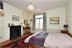 with stripped and varnished floors and casement window looking over the garden. Both double bedrooms have high ceilings, feature fireplaces and original fitted cupboards.