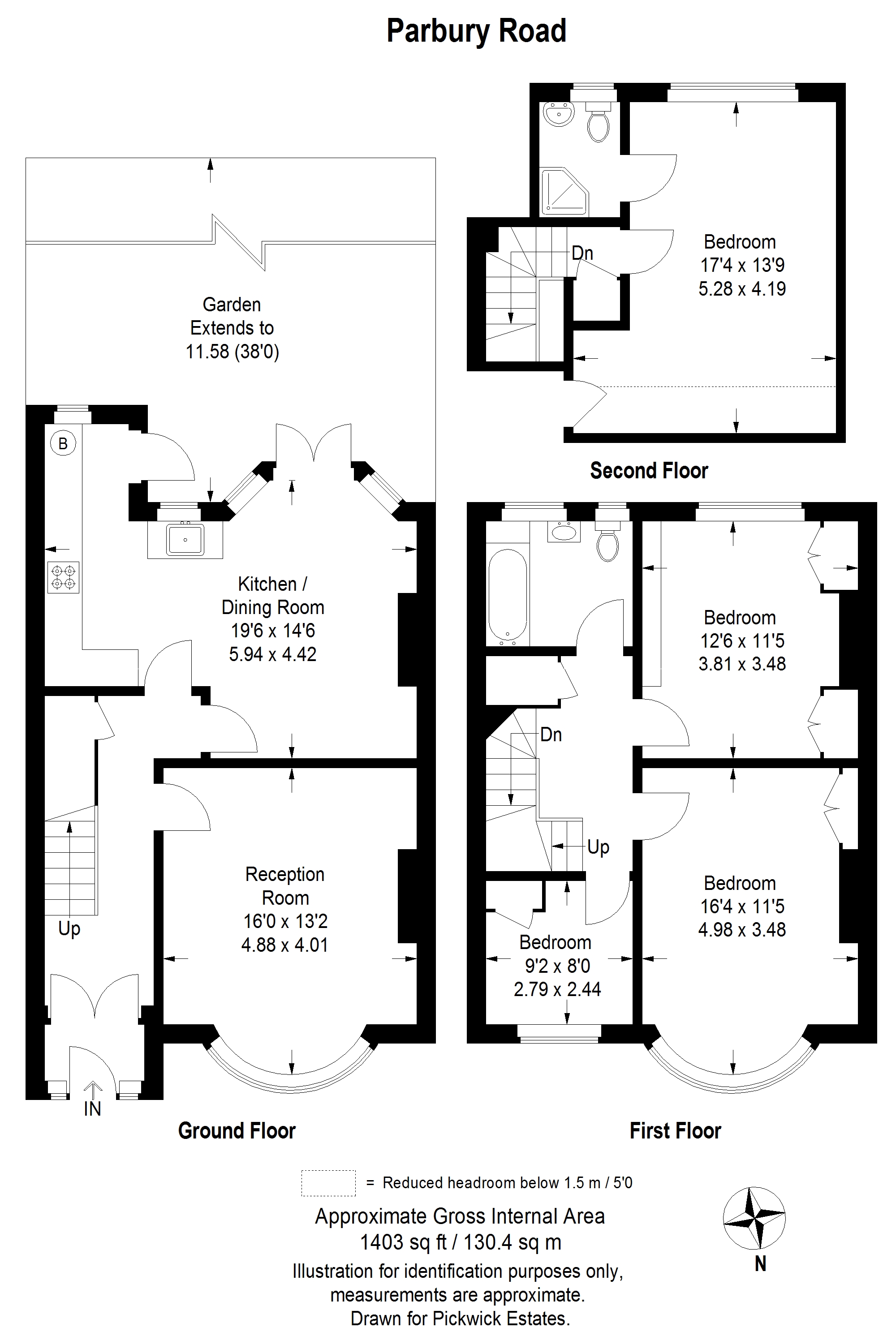 Sat proudly on the sunny SOUTH facing garden side of this popular residential street is this is a superb 4-bedroom,1930’s mid terrace family home offering plenty of well-proportioned living accommodation of 1403 sqft (130.4sqm). Parbury Road is located moments from all the convenient amenities the high street has to offer and Honor Oak Park station (within 210 meters!) offering excellent connections to London Bridge and on the Overground. The front of the house has an appealing façade with traditional curved bay windows on the first and second floor that still retain the original stain glass. A walled front garden shields the house from the street with a path leading to the front porch. Upon entry you are welcomed by amazing original features of stain glass double doors into the entrance hall which is clad in the original black and white floor tiles that are in excellent condition. The front reception room is cosy formal sitting area which has exposed original floorboards. There is a beautiful centre piece fireplace, high ceilings and the room is illuminated with natural light from the curved bay window. The kitchen dining room at the back of the house is open plan to create a good size family, entertaining space. The kitchen has tiled floors and a good amount of wall and base mounted units with integrated appliances. There are black granite worktops housing the hob with oven and extractor above and the sink that sits neatly under a window looking out to the garden. There is a patio door to the side which offers access to the garden. The dining area has original exposed floorboards, a feature fireplace and South facing French doors that offer access to the garden and fill this room with plenty of direct sunlight all day. The garden is a good size, approximately 38ft long (11.58m) and is a sun trap in the summer thanks to its Southerly facing aspect. There is a patio area nearest to the house which is perfect for al fresco dining on a summers evening, beyond this is a step up to a lawn which is surrounded by borders of mature plants and shrubs. Upstairs on the first floor are three bedrooms, all of which have stripped original floorboards. Two are large similar sized doubles with fitted cupboards and the other bedroom is a smaller double located at the front of the house above the hallway. The family bathroom on this floor is well proportioned with grey floor and wall tiles, there is a bathtub with a shower above, a contemporary style toilet accompanied by a wash hand basin. There are two frosted windows that allow for natural light and ventilation.The loft has been extended to create a good size double bedroom with an en-suite shower room. This bedroom has carpeted flooring, storage in the eaves, and a large double-glazed window that has views over the garden below. The en-suite shower room has tiled floors and walls, a toilet, wash hand basin and a glass shower enclosure. A frosted window allows for natural light and ventilation. Parbury Road is located in the heart of Honor Oak Park and very popular among young families, it is a quiet residential street made up of similar family homes, close to some highly rated primary schools such as Stillness School which is the nearest within 260 meters. The local train station is very convenient with regular services to London Bridge and Overground connections. The areas amenities include an array of excellent cafes, bars and restaurants as well as good places for local shopping offered by Sainsbury’s and a local deli. Green open spaces surround the area such as One Tree Hill, Blythe Hill Fields and the popular Horniman gardens with its famous Museum..