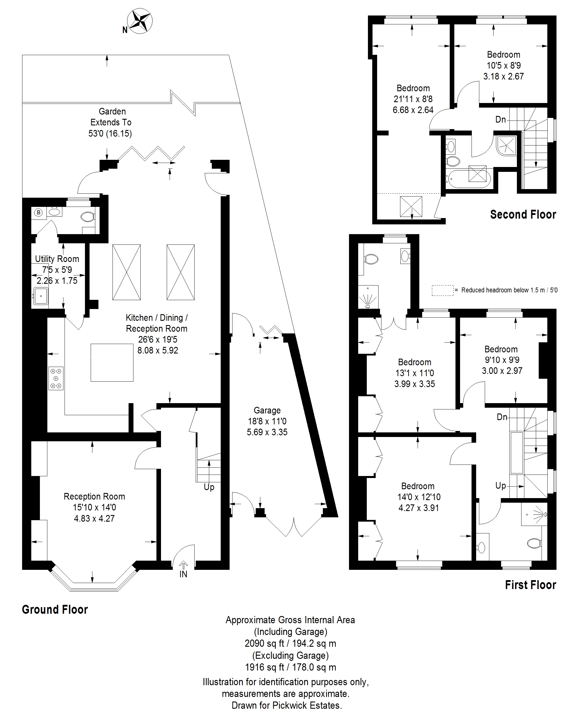 Upstairs on the first floor are 3 good size double bedrooms, the two largest have fitted cupboards in the alcoves of the chimney breasts and the one at the rear has a stylish en-suite shower room clad in marble tiles.