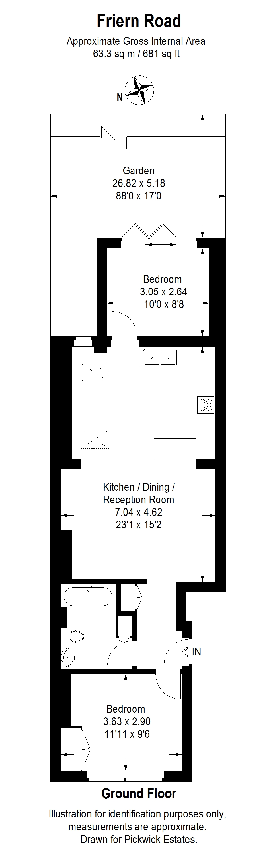 CHAIN FREE with a SHARE OF FREEHOLD. Beautifully decorated and well-proportioned is this fantastic two double bedroom period conversion located in the heart of leafy East Dulwich. Benefitting from direct access to an 88ft private, landscaped rear garden and a comes with a designated parking space. The rear of the property has been extended to create a fabulous kitchen, dining, reception room entertaining space. At the front of the property there is a charming principle double bedroom that has two gorgeous arched sash window and fitted floor to ceiling wardrobes. Further down the hall, next to a large storage cupboard, there is a very stylish family bathroom that has an abundance of storage cupboards that ingeniously makes use of every pocket of space available. The floors have black tiles, warm Travertine tiles around the bathtub which has a shower above and a glass screen, a toilet with hidden cistern and a sink with vanity unit beneath. There is a large, mirrored cupboard above the sink and a touch of exposed brick work for additional character within the alcove of the bath. To the rear, occupying the whole width of the flat is a lovely reception room which has engineered oak flooring that spreads seamlessly through to the modern kitchen dining room. The kitchen has plenty of storage and work surfaces with integrated appliances and the dining area is flooded with natural light from the large Velux windows above and a patio door that leads to the garden. At the far end of the flat is the second bedroom which benefits from lovely views and direct access to the rear garden through large floor to ceiling bi-fold doors. The large private rear garden has been beautifully landscaped, stretching over 88ft at a South-Easterly direction, providing an abundance of sun throughout the day with a large patio area nearest to the house and a large storage shed to the rear.Enviably located in the heart of residential East Dulwich, Friern Road offers excellent access to the local parks, green spaces and local schools as well as the independent shops, bars and restaurants of Lordship Lane, North Cross Road and Forest Hill Road.There are strong transport links into The City and West End from East Dulwich station (1.1 miles) and Forest Hill station (1.3 miles) as well as bus/cycle routes through the neighbouring Peckham Rye, Dulwich Village and Camberwell.