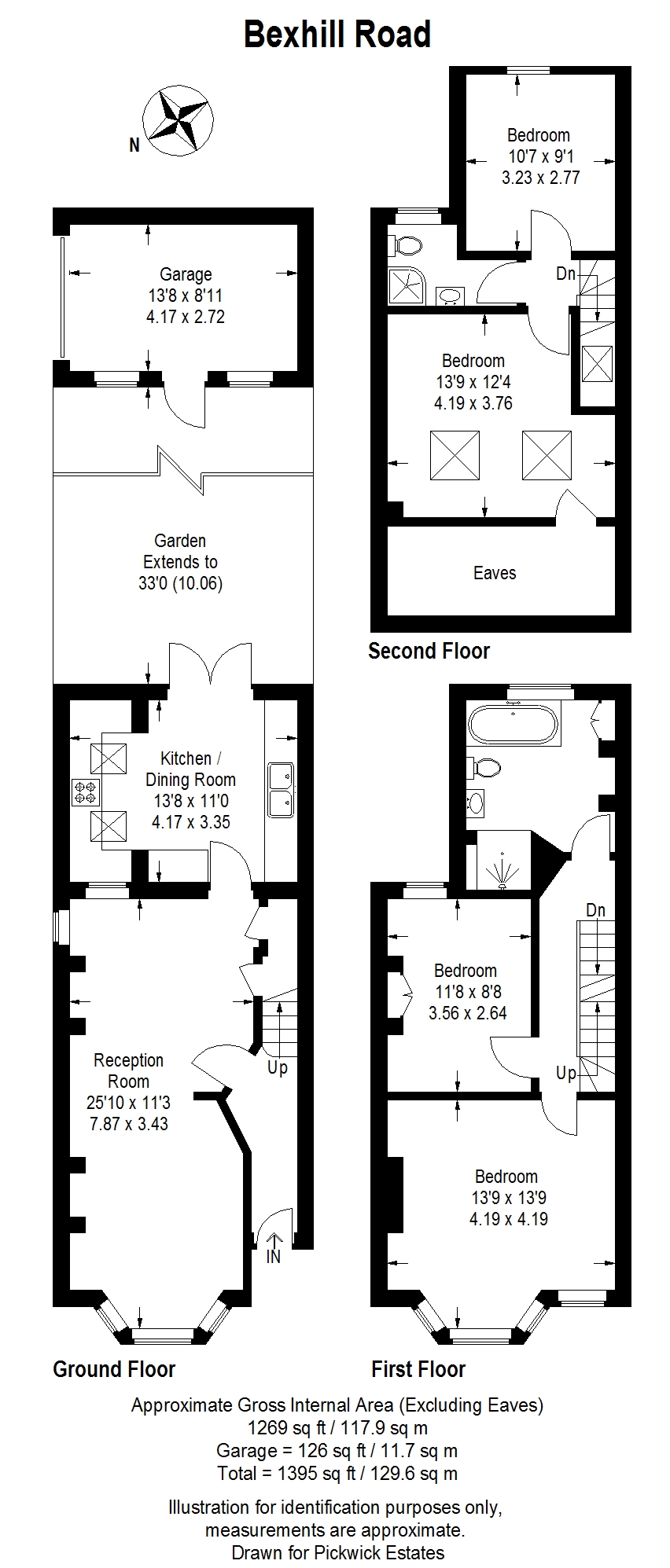 The house has an impressive façade of exposed bricks with detailed masonry around the bay windows, everything you would expect from a typical Victorian property. It’s set back from the street by a walled front garden with a traditional Victorian tiled pathway that leads to an arched front porch. As an end of terrace property, there is very useful access from Brightling Road to the garden through the garage.