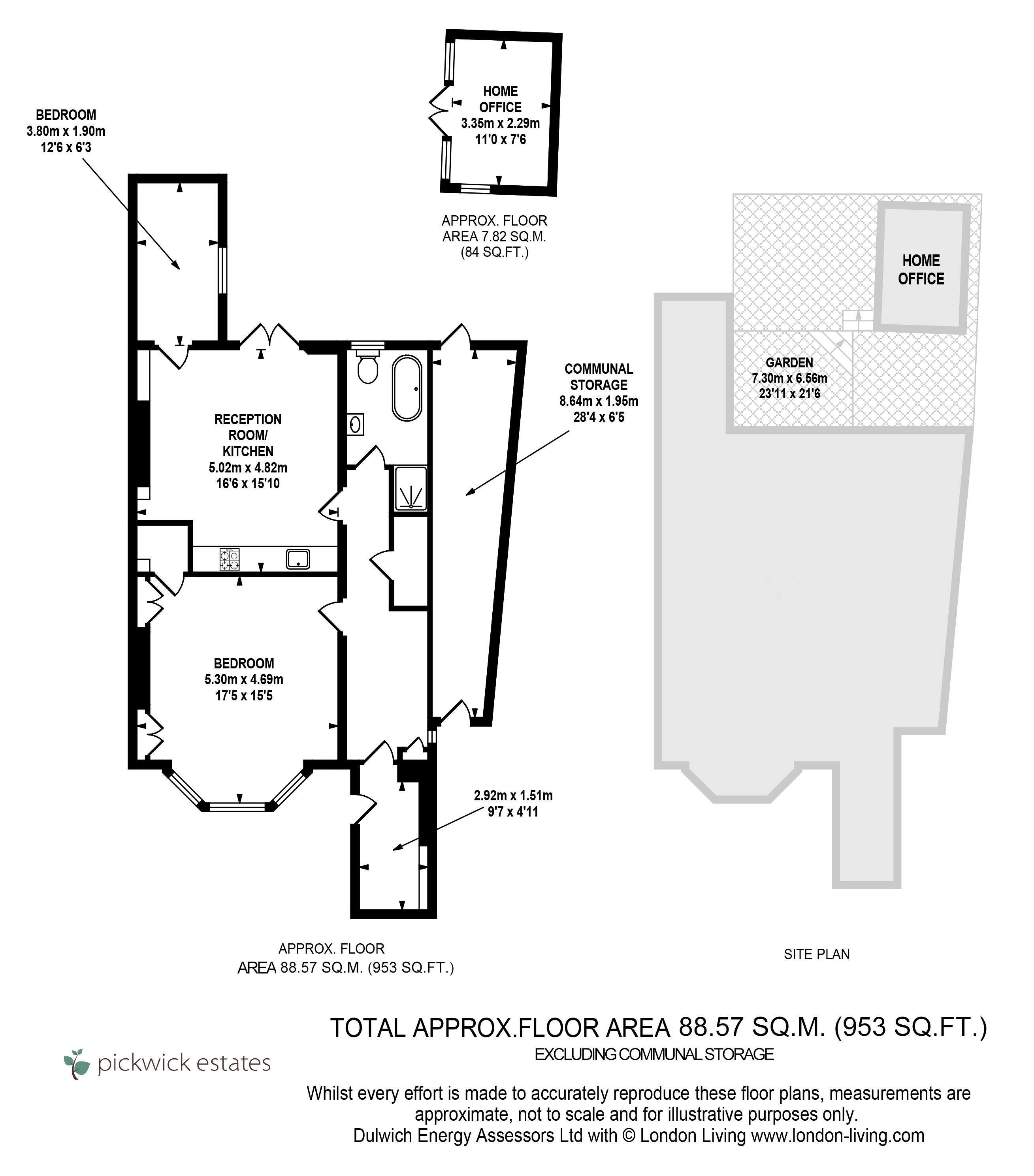 Occupying the whole garden level of this stunning end of terrace Victorian house is this well-proportioned two-bedroom maisonette that benefits from a beautifully landscaped WEST facing private rear garden with a home office/studio, also accessible from a communal side return, that offers great additional storage. The whole property has been painstakingly renovated by the current owner. Total floor space is a very generous 953 Sqft (88.57 Sqm)! The statuesque building has recently been externally restored which adds to the impressive kerb appeal. From the grand raised steps, there are a couple of steps down the side to this flat’s own front door which is flanked by a pretty front garden. Upon entry there is a good size entrance hall and large storage area under the front steps.Beyond this is a wide hallway with utility cupboard and access to all the primary rooms. At the front of the property is a luxuriously generous primary bedroom that is approximately 6m x 5m! It has fitted cupboards and wardrobe. Overlooking the front garden is a beautiful bay sash window that offers plenty of natural light to this room and has been restored with its original shutters. The luxurious bathroom suite brings this flat back into the 21st century whilst being sympathetic to the character and charm this property exudes. Notable features include real marble tiling, a stunning freestanding stone bath looking over the rear garden, and , a separate walk-in shower enclosure. Towards the rear of the property is a lovely kitchen reception room which is a good size (almost 5m x 5m) and has French doors opening out directly onto the rear garden. The kitchen is well equipped with solid oak classic shaker style cupboards, white Quartz worktops and Smeg appliances. The second bedroom is located at the far end of the flat, fits a double bed and makes a good spare room or study. The garden catches the afternoon sunshine thanks to its Westerly aspect. It has been beautifully landscaped with patio areas, planting and a raised deck which is a suntrap, perfect for al fresco dining and lounging. Here there is a garden room/studio with electricity, plumbing and insulation. An ideal space for those working from home. The local area offers an abundance of amenities, Brockley Market is an award-winning farmers market that operates every Saturday literally round the corner. The Talbot, also under 5 mins walk away, is a renowned gastropub serving local craft beer and fine wines. The green open space of Hilly Fields is down the road which is a beautiful park with stunning views over Canary Wharf, the Shard and the 02 Dome. Located in a conservation area there is an active society of local residents who maintain the creative local vibe and it is very leafy and peaceful considering the property is in zone 2.There is an abundance of great transportation links nearby, good bus routes from Lewisham Way, St John's station is 4-5 mins away with links to London Bridge (7 mins) and Cannon Street (10 mins). Lewisham train station is also within walking distance adding regular South Eastern services to London Victoria, Charing Cross Woolwich Arsenal as well as the DLR which goes to Greenwich, Canary Wharf and continues to Stratford and Bank. This is a great maisonette in a superb location, an absolute must view!