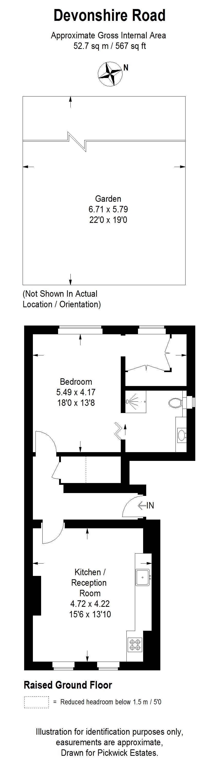 Beautifully presented one-bedroom flat, set on the raised ground floor of this spectacular semi-detached red brick Victorian house. This impressive property has kerb appeal in abundance and it also benefits from its own private landscaped rear garden, off street parking and is being sold with a SHARE OF FREEHOLD. Raised ground floor steps lead up to the front entrance of the building where there is a well-maintained communal entrance hall. At the front of the property is the main reception room which is dominated by a large floor to ceiling sash windows that fills the room with natural light. As the flat is set on the raised ground floor the reception room is located high above the street level allowing plenty of privacy. The room is stylishly decorated with high ceilings engineered wood flooring, stylish column radiators and a charming original feature fireplace. The kitchen open plan to the reception room set to side of the room and offers plenty of base and wall mounted white units with integrated appliances. It has a metro tiled splashback with a wooden worktop housing the sink and hob with oven below and extractor above. The bedroom is a good size double with more engineered wood flooring, high ceilings with cornicing and nice green views over the rear gardens via the large sash window that has a lovely column radiator beneath. No need for wardrobes! The bedroom has its own walk-in wardrobe! Filled with tall bespoke fitted cupboards and a large sash window for natural light and pleasant views. The bathroom is partially tiled with natural-coloured walls and floors, including a nice walk-in shower enclosure, a toilet and a wash hand basin that sits on a vanity cupboard that also houses the washing machine. A window above the toilet allows for natural light and ventilation. The garden is completely private to this flat and has been nicely landscaped to create a lovely low maintenance space to enjoy in warmer months. There is a central sandstone patio surrounded by horizontal fencing with raised beds that are full of mature pants and shrubs offering plenty of privacy. Located further down the garden makes this space a sun trap and offers more seclusion from the surrounding trees too. Devonshire Road is a much-loved street stretching form Forest Hill town centre to Honor Oak. This home is at the Forest Hill end, in the conservation area, only a few minutes' walk to the independent shops and cafés found nearby and the magical Devonshire Road nature reserve. Forest Hill station is just 5-minutes away, (less than 500 metres) has services to London Bridge, Victoria and London Overground links to Canada Water, Shoreditch, Hoxton, Dalston Junction and Highbury & Islington. At the end of the street is St David's which is the prettiest coffee shop you could wish for, there are superb nights at The Signal and some great pizza places. You'll also find a Sainsbury's, Post Office, WH Smiths, Boots, delicatessens and modern swimming pool/leisure centre. Horniman Museum and Gardens is very close and holds regular farmers' markets, great summer events and a butterfly sanctuary, while Sydenham Woods is also within walking distance.