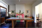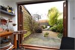 The rear of the property is occupied by a beautiful kitchen-dining room, fitted with a stylish bespoke kitchen and a full range of integrated appliances. Cabinetry runs along both sides of the room, providing excellent storage and worktop space. A large stainless-steel sink sits beneath a window overlooking the side return, while the dining area is flooded with natural light from the double-glazed solid timber bi-fold doors opening onto the garden.