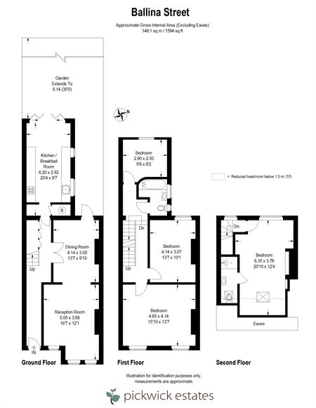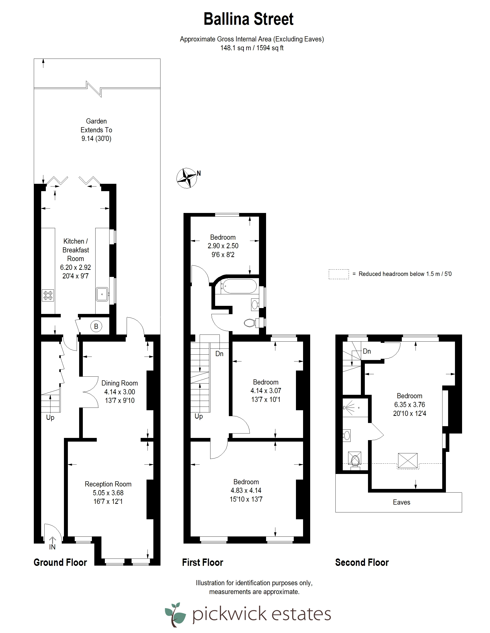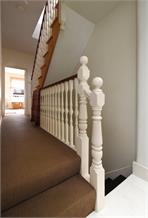 The first floor offers three bedrooms. The principal bedroom spans the full width of the house and benefits from two wooden sash windows, a feature fireplace, and high ceilings with cornicing. Adjacent is another well-proportioned double bedroom, also featuring a charming fireplace and a sash window overlooking the garden. The third bedroom is at the far end of the house and offers nice views over the rear garden.