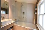 Completing this floor is a well-presented family bathroom, finished with mosaic tiling and comprising a bath with shower above, contemporary WC, heated towel rail and wash-hand basin with storage beneath.