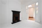 The ground floor offers two interconnecting reception rooms, both rich in period character with original fireplaces, exposed floorboards, ornate detailing and high ceilings. The front reception is enhanced by a large square bay window, flooding the room with natural light, while French doors from the rear reception open into the kitchen-dining space.