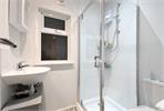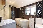 A spacious family bathroom provides both a bath and separate walk-in shower with underfloor heating.