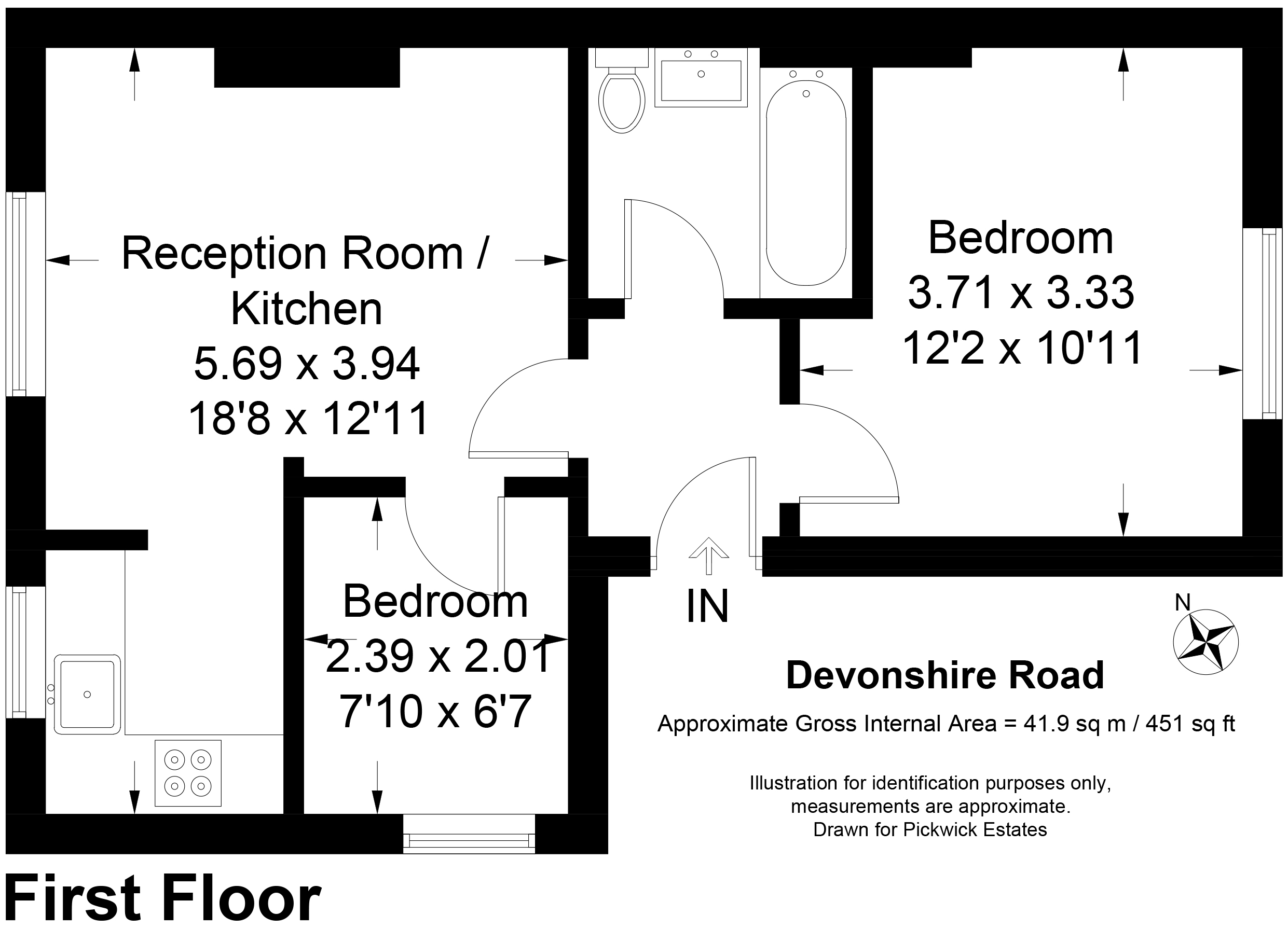 The reception room is located at the front of the house with semi open planned kitchen, this area is carpeted and benefits from a nice feature fireplace with built in shelving in the alcoves. A large sash window illuminates the room with natural light.