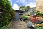 The rear garden is a true highlight. Peaceful, private and wonderfully secluded, with a desirable west-facing aspect capturing the afternoon and evening sun, it was landscaped in 2023 and has been thoughtfully designed with sandstone paving, improved drainage and raised beds for ease of maintenance. A raised deck at the rear provides the perfect spot for summer evenings, along with access to a garage and a rear service road, ideal for parking and practical use.