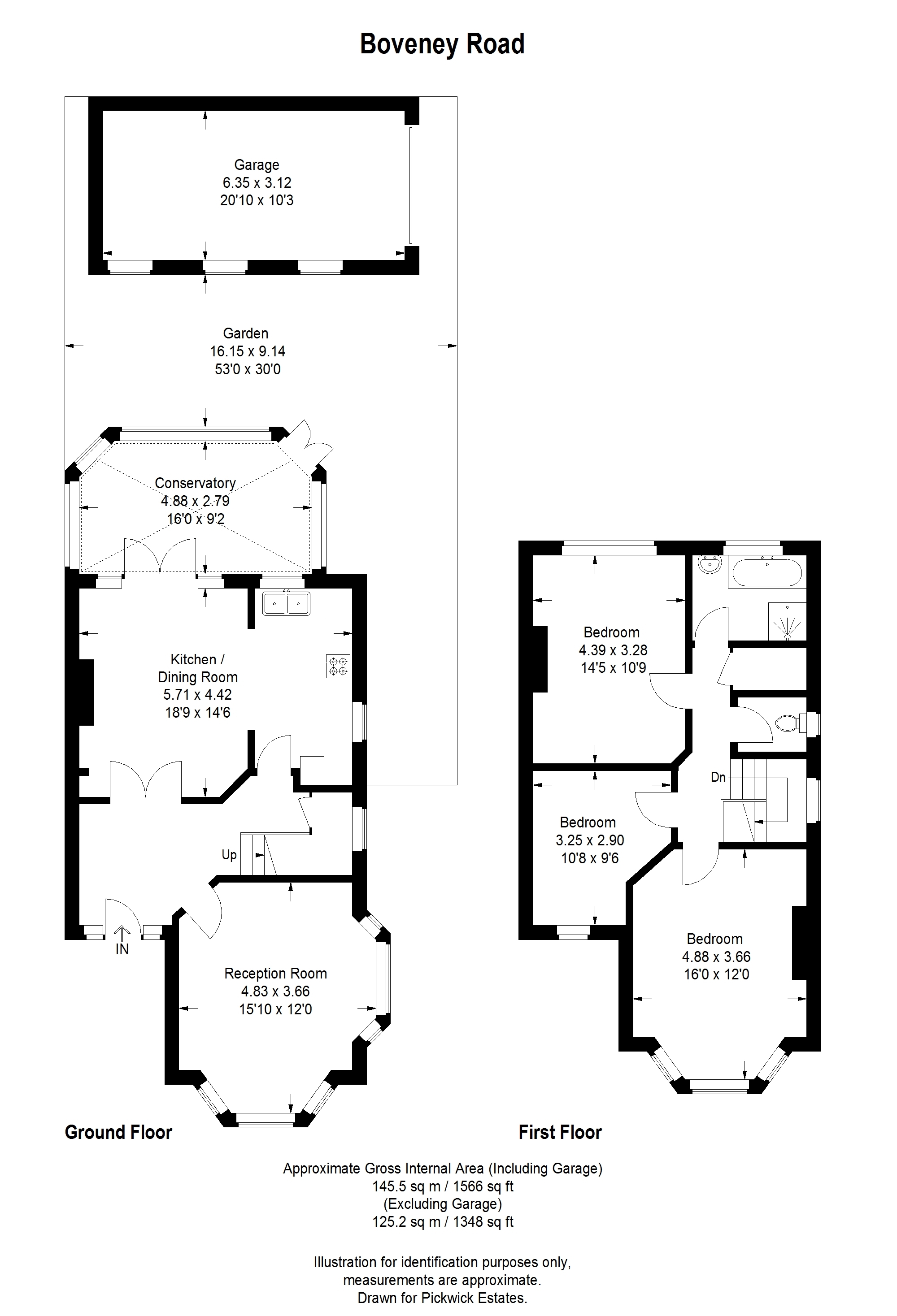 The wooden-framed conservatory is a bright and versatile extension of the living space, enjoying delightful views over the mature south-east facing garden, which measures approximately 53ft by 30ft (16mx9m). A patio area sits closest to the house, ideal for outdoor dining, leading onto a lawn bordered by established plants, shrubs, and trees. A pathway runs to the side, providing access to the rear of the garden and the brick-built garage, which is also accessible from the street. Thanks to its unique corner position, the garden enjoys sunlight throughout the day, from morning through to late afternoon.